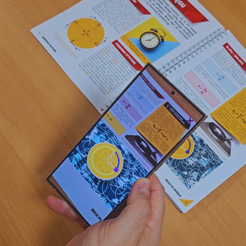 A „Ruch po okręgu” című témához tartozó AR, „Ruch jednostajny i niejednostajny po okręgu”.